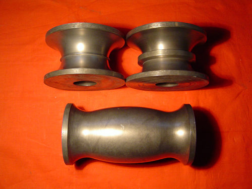 模具材料Cr12MoV,被加工材料为不锈钢板,原来一般采用高淬高回加氮化处理,很难解决焊管表面拉伤问题,模具寿命很短。后采用模具直接加工抛光到位,无须热处理,再进行TD覆层处理,可根本解决焊管表面拉伤问题,模具寿命较氮化处理提高4倍以上。